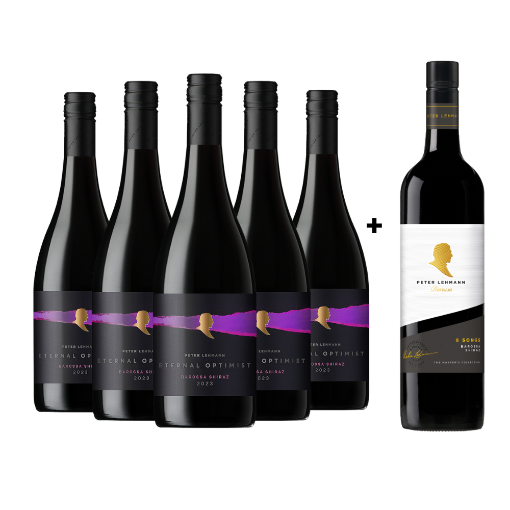 This exceptional pack features five bottles of our 2023 Eternal Optimist Shiraz - a trophy-winning, Double Gold, Top Gold wine - complemented by a 6th bottle of the 2021 Eight Songs Shiraz, an 8-time gold medal winner and a true testament to Barossa excellence.